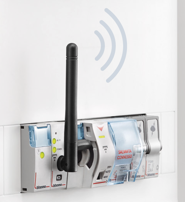 Si tratta di un interruttore differenziale con riarmo da remoto, che in caso d'intervento, sfruttando il Wi-Fi di casa, invia una notifica tramite app ad un cellulare, dal quale è possibile decidere se e quando eseguire il riarmo.