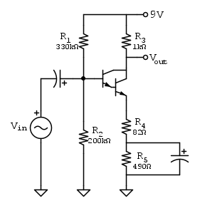 Visto che l'emettitore non è a ground, bootstrap per alzare l'impedenza di ingresso. Proverei anche con uno sziklai per ridurre a VBE del Darlington.