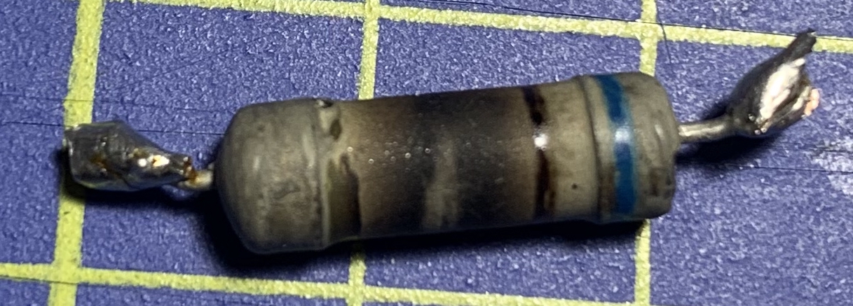 Le prime due bande sono blu e marrone (quindi dovrebbe essere 61), togliendo il rivestimento vedo 2 spirali (quindi da quanto ho capito dovrebbe essere <= 10 ohm) e le dimensioni sono 5x15mm (quindi mi aspetto 2-3W visto che è su un filo che va a un motorino elettrico).