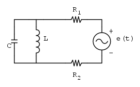 il condensatore e l'induttore sono in parallelo quindi c'è risonanza. Il resto del circuito vede i due bipoli come un circuito aperto.Non essendoci passaggio di corrente in