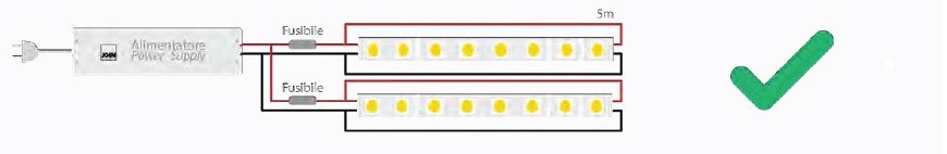 Ipotizzavo di collegarli come in figura, due strisce da 8 metri. Mi consigli di fare diversamente?