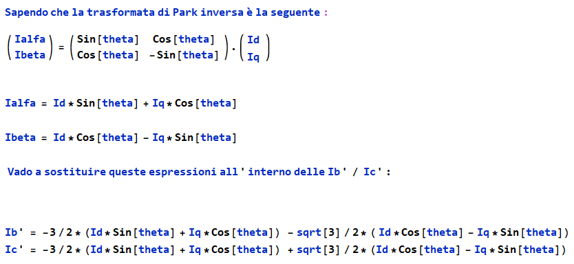 le matrici di Clarke e Park, nell'immagine in forma inversa, sono corrette, si basano sul riferimento precedentemente mostrato in qualche messaggio precedente.