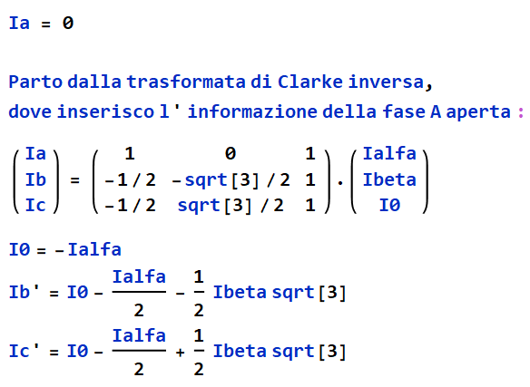 Controlla meglio gli elementi della matrice di Clarke e ci fai sapere.