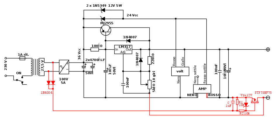 OT: Va bene togliere la tensione ma nello schema proposto la limitazione in corrente è praticamente inesistente. Un assorbimento anomalo può fare danni più estesi di una sovratensione, a volte.