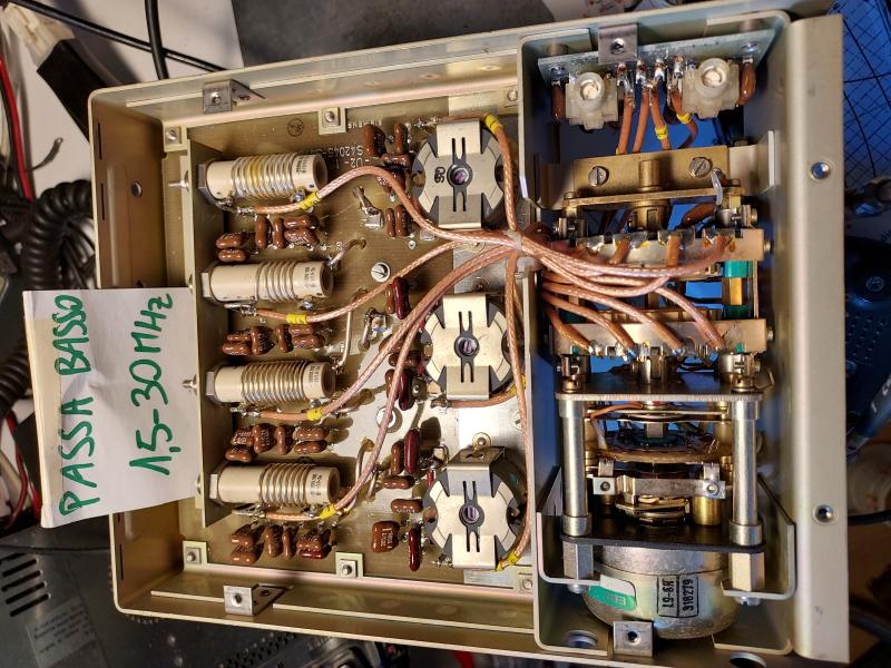 Non lavora con i relè ma con un motore che ad ogni impulso si muove di un passo e commuta i 7 filtri da 2,7MHz a 24MHz.