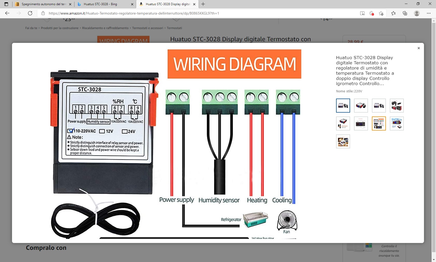 1 Termostato per la temperatura e umidità ( Huatuo STC-3028 220 V)