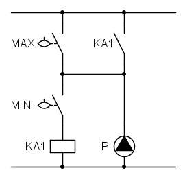 Essendo piccola la potenza pensavo di comandare direttamente la pompa con il doppio sensore di galleggiamento, ma come funzionerebbe la logica del circuito?