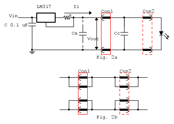 Se ti occorre una corrente maggiore di 1 A metti tanti circuiti in parallelo Fig. 1b