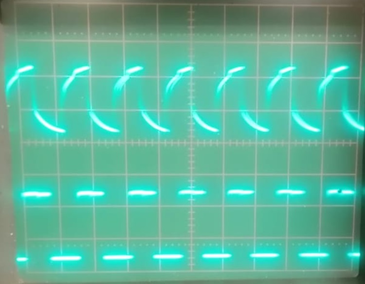 Adesso ho un problema con la forma d'onda che non è uguale per entrambi i circuiti i quali pero sono costruiti nello stesso modo e le misurazioni li ho fatto senza cambiare le impostazioni del mio oscilloscopio (vintage).