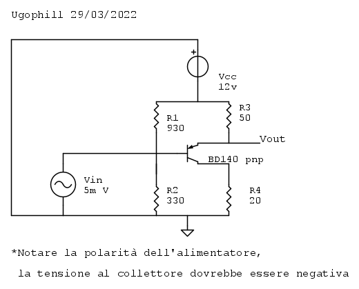 Amplificatore rudimentale con transistor PNP