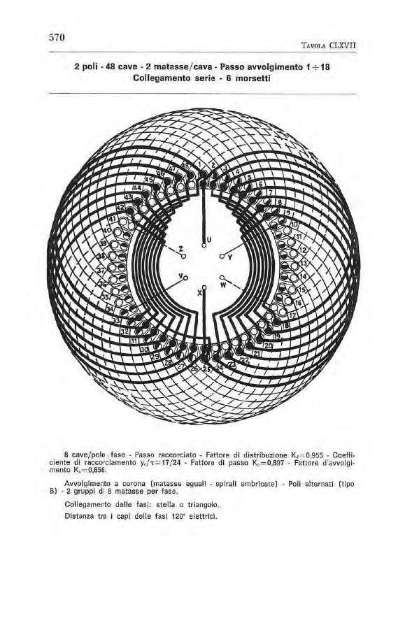 Ho un pacco storico m.a.t. avente 48 cave, due poli, due gruppi di matasse in parallelo, avvolgimento embricato corona con passo matassa di 16. Teoricamente 8 cave piene x polo ,L'avvolgimento è costruito a mezze cave diciamo, cioè ci sono 16 mezze cave di un gruppo aventi 8 mezze cave (lati matassa) a formare un polo, quindi ho 16 mezze cave(o lati) a farmi un polo x che i 2 gruppi sn in parallelo spero si capisca. Ogni mezza cava è composta da 11 spire , il problema è come riuscire a calcolare il coefficiente di avvolgimento (è la stessa cosa del coefficiente Blondel?) Mi sembra di capire che più si apre a ventaglio un polo più questo coefficiente si abbassa perche appunto e la somma vettoriale diviso la somma algebrica delle forze. Ma non mie del tutto chiaro di come calcolarlo in questo caso specifico (ci sn mezze matasse , cambia qualcosa?) inoltre volevo capire di quanto si possa "aprire " a ventaglio un polo 180 ° è il limite teorico? Parliamo sempre di m.a.t un grazie a chi vorrà darmi una mano .