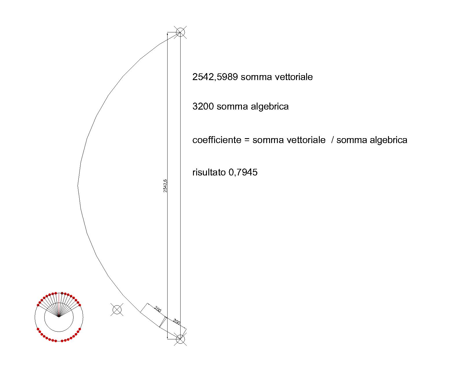 Alla fine l'ho "calcolato" o meglio sfruttando CAD ho trovato la risultante di tutti i vettori sommandoli e dividendo per la somma algebrica, però mi risulta più basso di quel schema postato