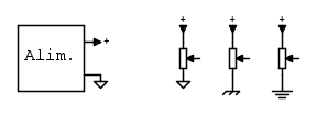 Io utilizzo la freccia entrante per il collegamento all'alimentazione e uscente dalle sorgenti di alimentazione, inoltre il collegamento al riferimento comune lo disegno con un triangolo oppure con i simboli di massa o di terra che non andrebbero confusi tra loro o utilizzati impropriamente come invece spesso accade.