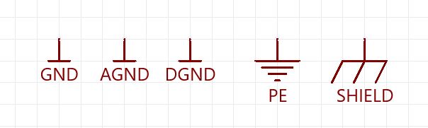 Usiamo la barra come simbolo generico per il riferimento per la sua compattezza, il testo ci deve essere perché è quello che differenzia i vari "ground". Vedi questo esempio: