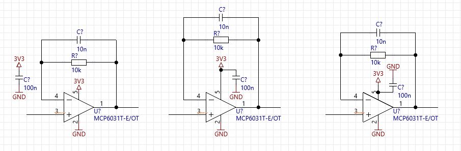 - nel caso di un op-amp, non voglio avere roba estranea all'interno del feedback loop, vedi per esempio questi amplificatori a transimpedenza (da sinistra a destra: buono, brutto, cattivo):