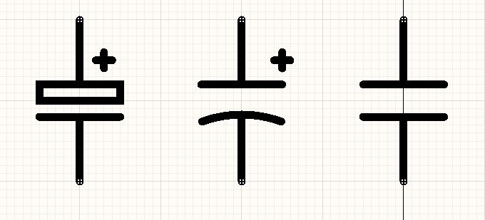 Theodoro: I condensatori hanno sempre la stessa dimensione ma con quelle del tuo schema non riuscirai a disegnare un condensatore elettrolitico.