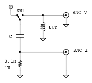 Il valore del condensatore lo scelgo in modo che la frequenza di risonanza risulti "comoda da vedere" ad esempio qualche kilohertz, e la impedenza caratteristica del risonatore non sia troppo elevata (al piu`qualche ohm). Ad esempio con 2Ω di impedenza caratteristica del risonatore, se il condensatore e` carico a 10V, la corrente potrebbe salire fino a 5A (un po' di meno causa perdite).
