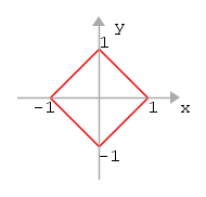 Il luogo dei punti equidistanti 1 dall'origine ( la circonferenza unitaria ) nella geometria del taxi è questo: