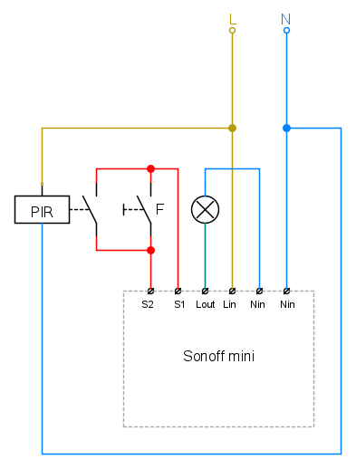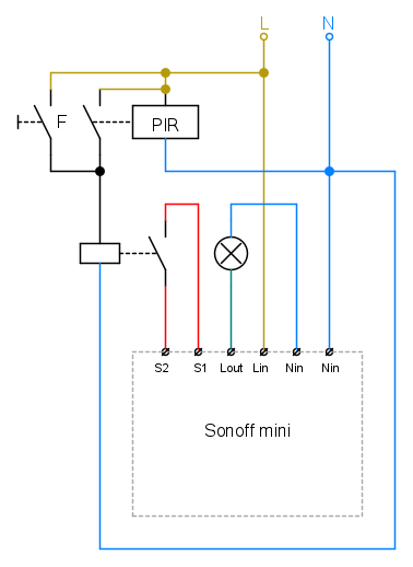 In caso contrario serve un relè monostabile per poter collegare un contatto pulito tra S1 e S2: