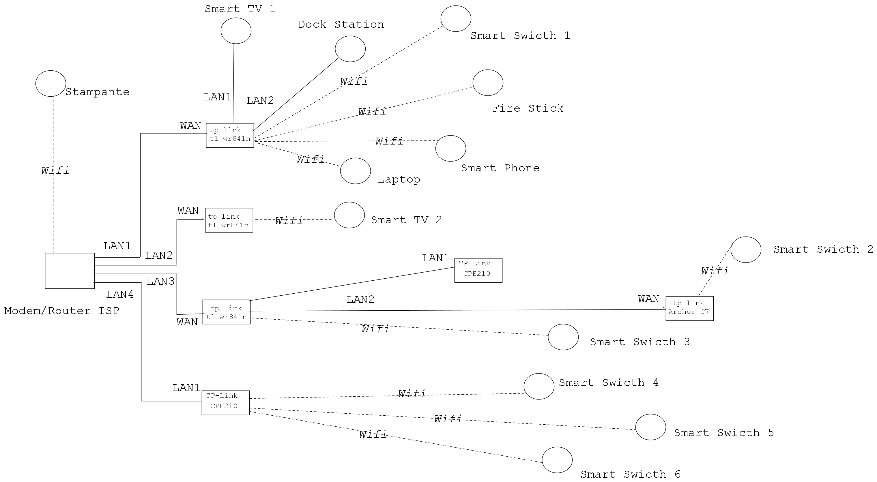 di seguito trovate la mia rete attuale. Diciamo una bella porcheria! Non è stata fatta nessuna configurazione ne come Operation mode dei vari device ne come IP etc...
