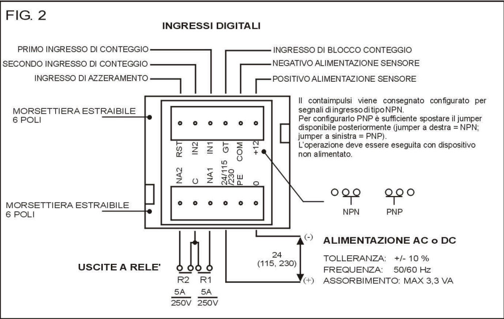 Ed il pulsante di reset? Sempre alimentato da 24Vdc oppure sempre alimentato da conta impulsi?
