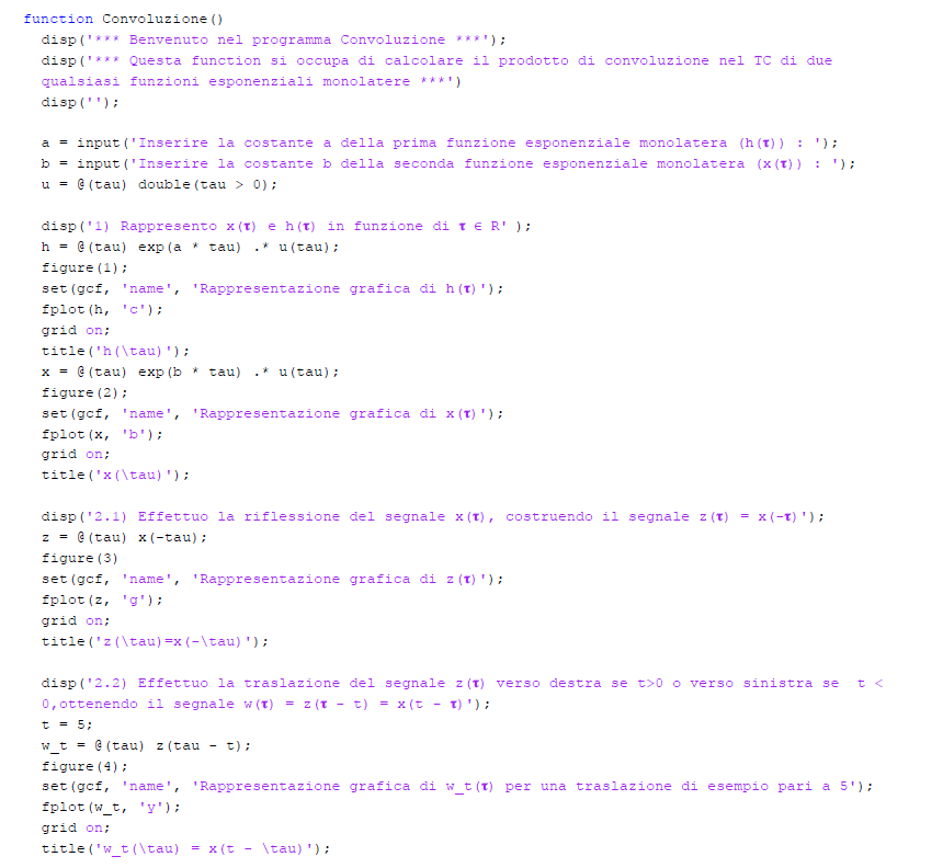 Gentilissimi, avrei bisogno di una mano con un progetto assegnatomi. Dovrei sviluppare un algoritmo Matlab in grado di calcolare il prodotto di convoluzione. Fin qui nessun problema, infatti vi posto il codice da me scritto: