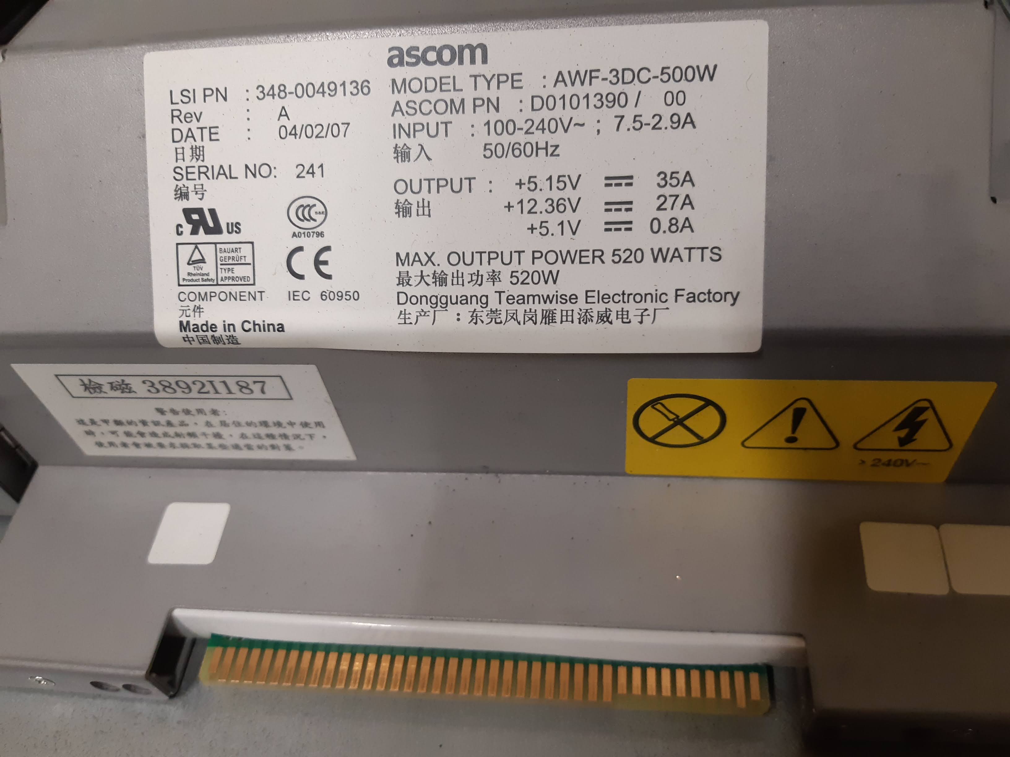Per l'ASCOM ho trovato in rete il riferimento ad IBM 520W POWER SUPPLY 14J0665 ma poi non trovo altro