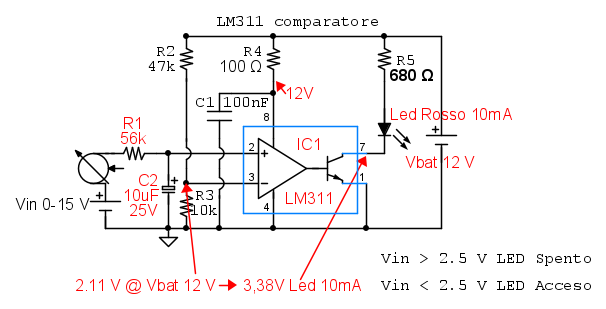 SediciAmpere ha scritto:Secondo la simulazione, la spia si accende quando la Vin scende sotto 2,4 V e si spegne quando supera i 2,8V
