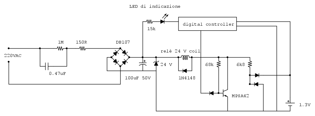 Tuttavia, all'atto di attivare l'interruttore, è possibile udire il rumore del relè che rimbalza (si chiude e si riapre in una frazione di secondo), mentre il led di segnalazione integrato nel controller (che immagino essere alimentato dalla resistenza da 15k) riduce progressivamente la sua luminosità.