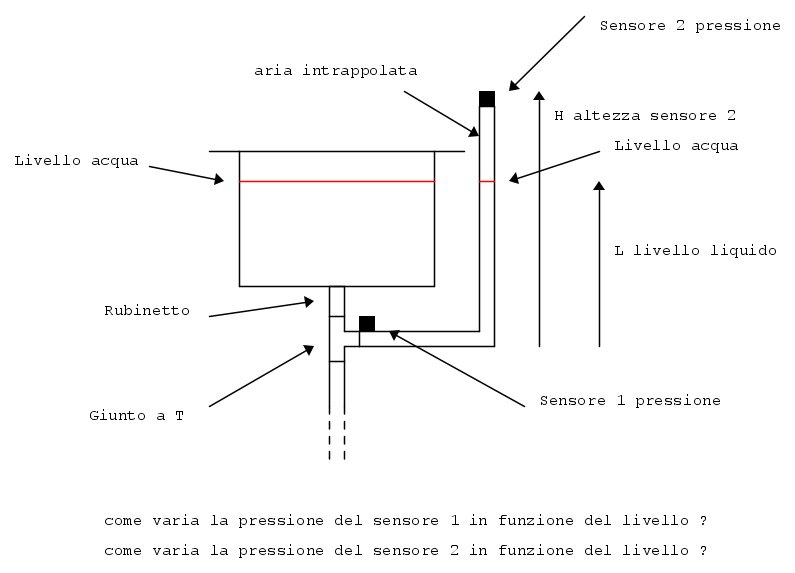 Spero che sia chiaro che se il livello del liquido davvero è come nei disegni dei post precedenti, allora il sensore di pressione misurerà la pressione atmosferica. Deve esserci una differenza di livello tra il serbatoio e il tubetto perché si formi una sovrapressione nello spazio al di sopra del liquido.