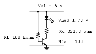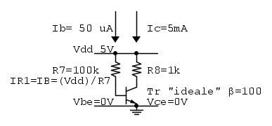 d) schema con transistor "ideale" in cui le tensioni di "conduzione" e "saturazione" sono 0 (zero).