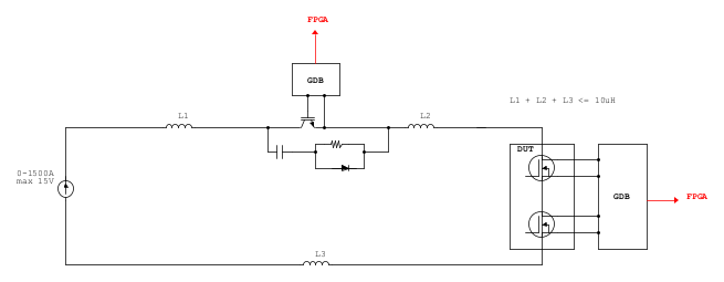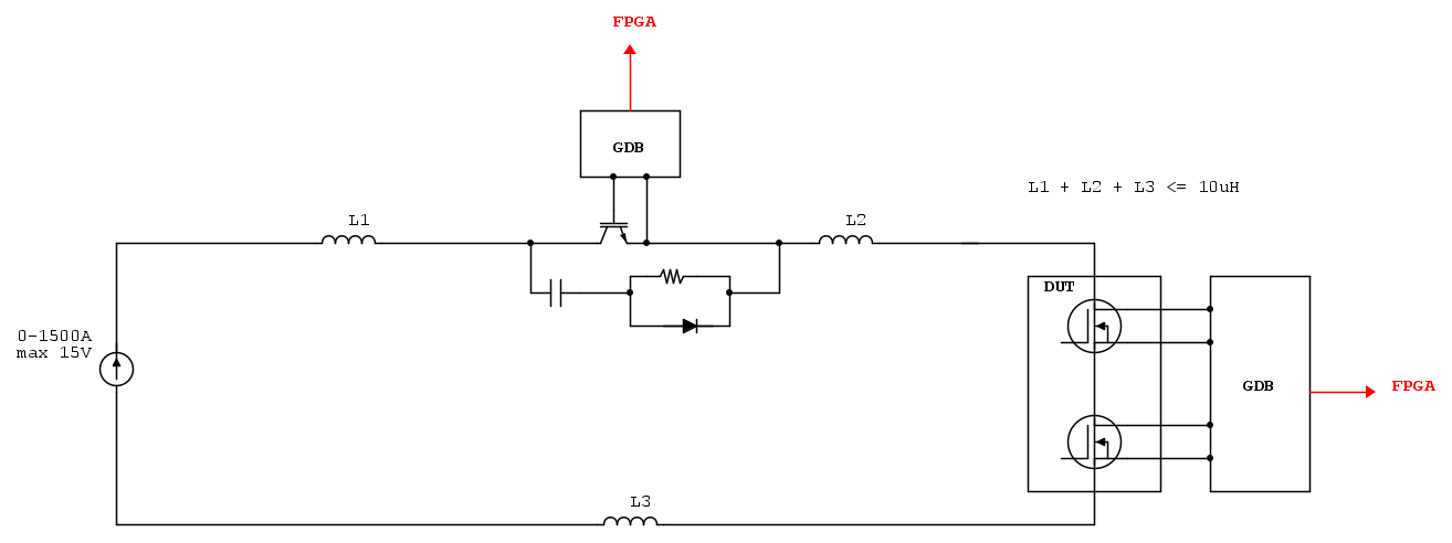 L'IGBT in questione deve tagliare un'alta corrente DC (fino a 1500A) imposta da un generatore di corrente a tensione limitata (15V). Il carico è costituito da dispositivi a semiconduttore in stato di ON (= corto circuito).