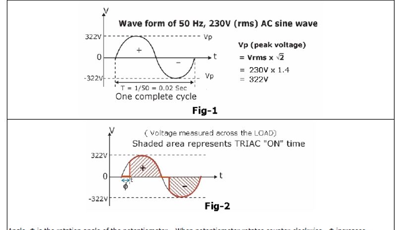 Nella semionda positiva, mettiamo che a monte del potenziometro ci sia la tensione positiva e a valle del C1 lo 0 V, il TRIAC entra in conduzione in ritardo rispetto alla fase della tensione di alimentzione perche deve attendere il caricamento del C1 in modo che la tensione a monte del C1 supuri i 30V di bo del DIAC.