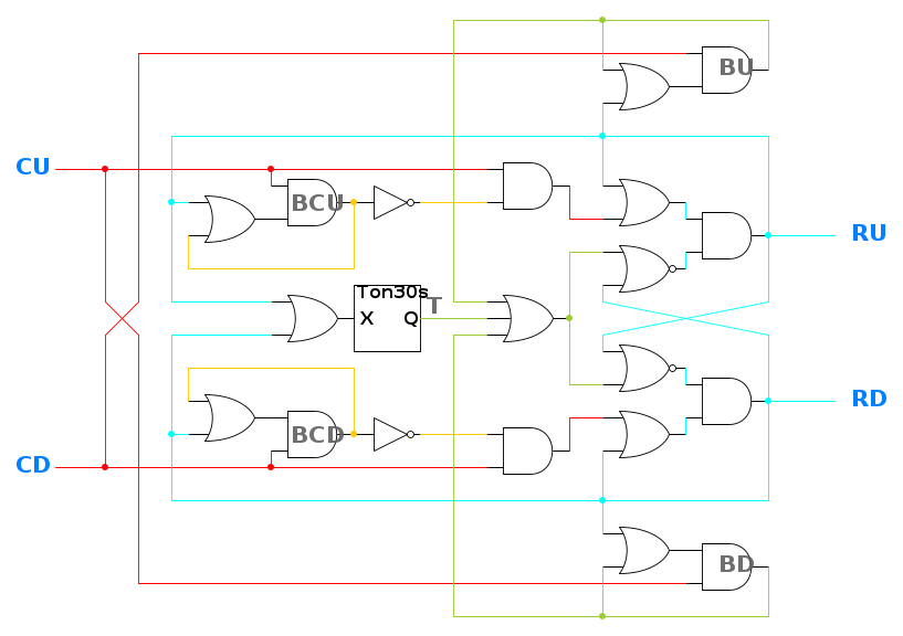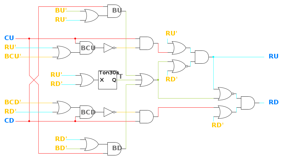 Si ottengono due possibili soluzioni (a seconda di quale uscita si valuta per prima), questa è una: