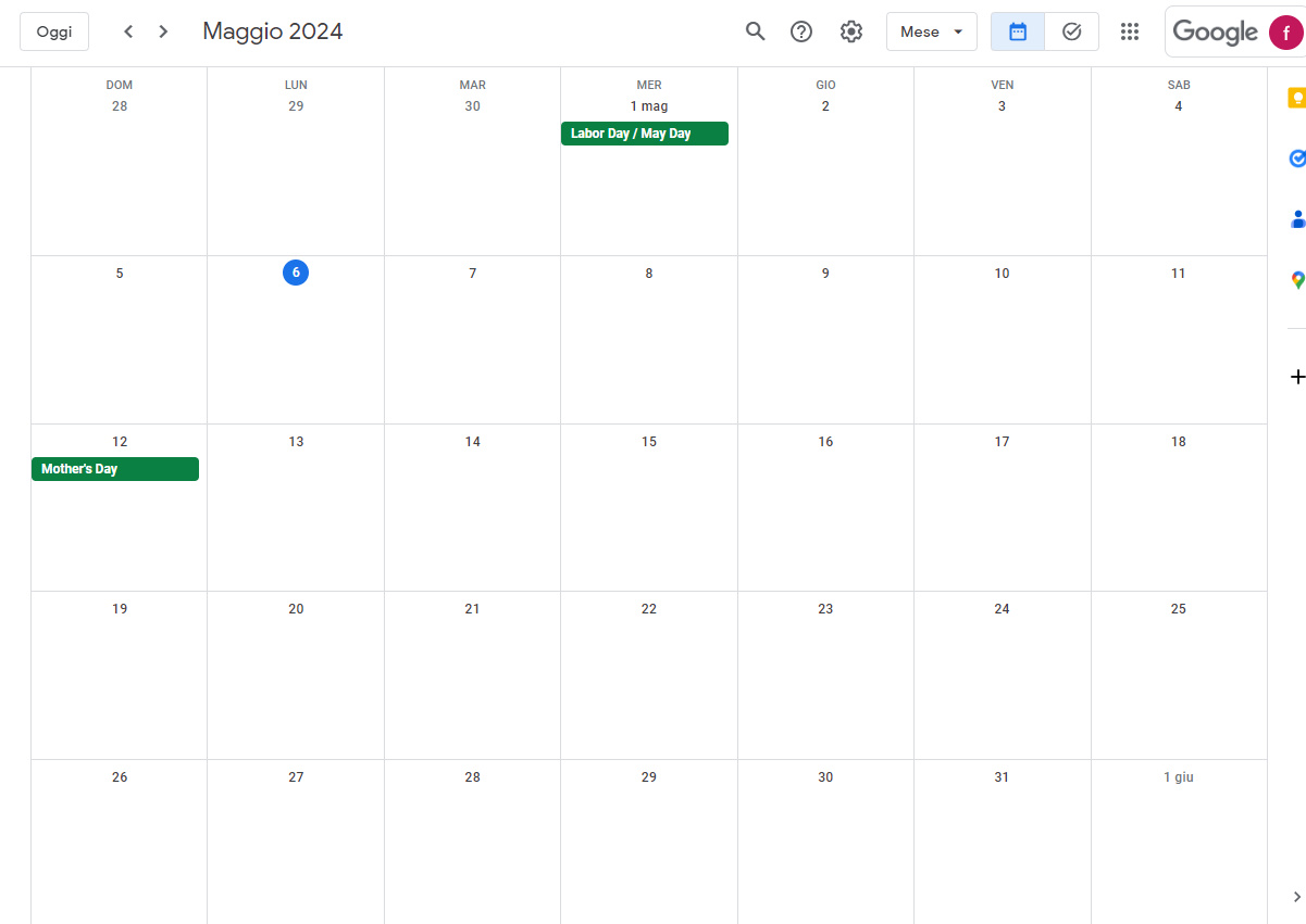 Ho provato ad accedere al Calendar (che uso raramente) e la vista che si vede è questa: