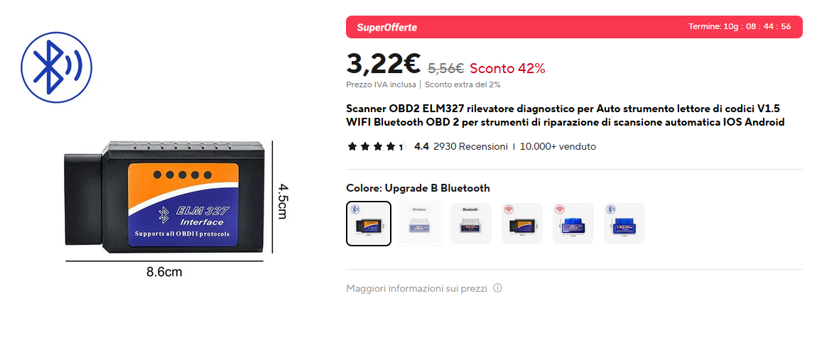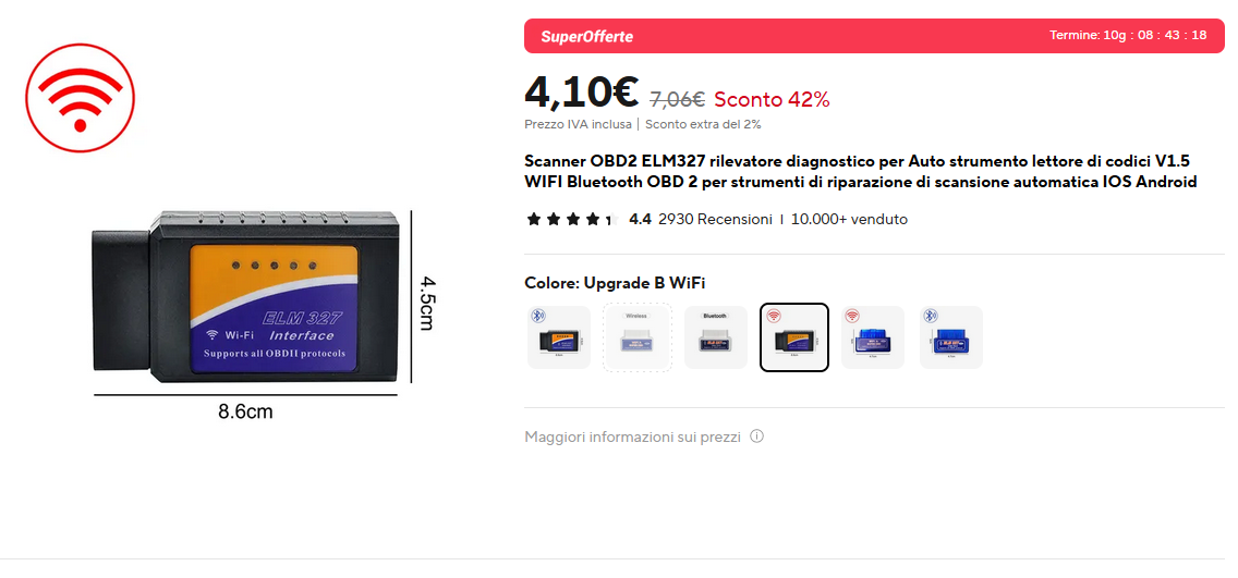 Su AliExpress puoi trovare l'ELM 327 non mini, in versione Wi-Fi oppure Bluetooth.