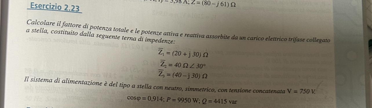 Mi pare che la soluzione del libro non sia precisa, la potenza attiva dovrebbe essere P=8910W .