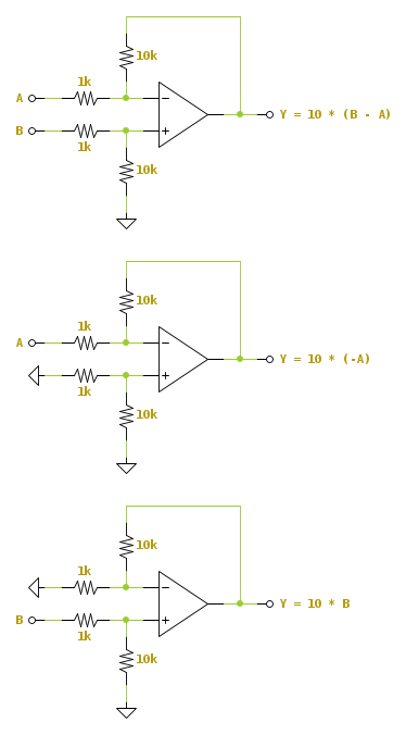 ho implementato l'ultimo in basso, non invertente, entrano 10mv esce 1mv