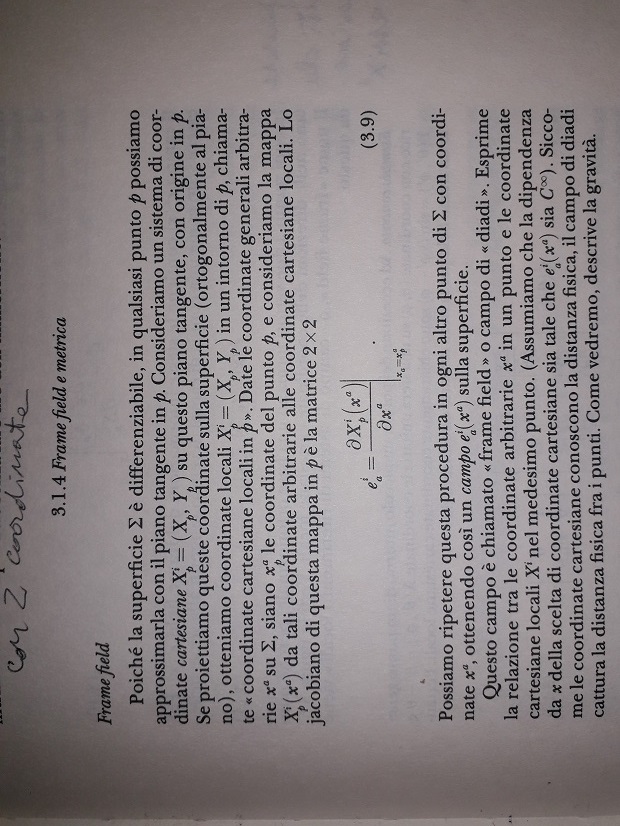 Ianero ha scritto:Gli assi nel dominio della carta sono 2, ma gli assi che emergono su un generico punto della superficie sono 3, e sono descritti da una terna di numeri e non da una coppia, nonostante la superficie è sempre stata bidimensionale.