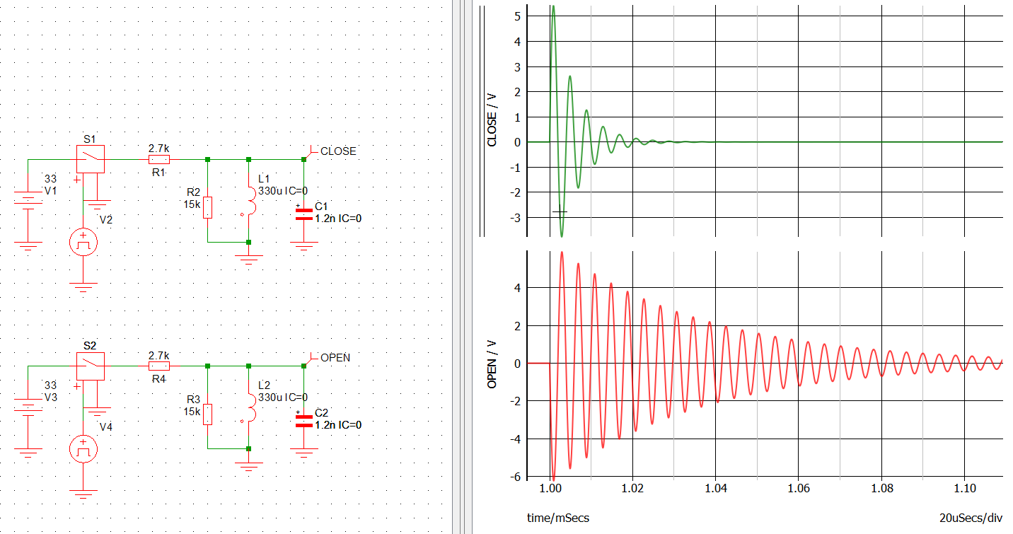 Mi piacerebbe fare una verifica con un simulatore o meglio ancora risolvere i due transitori nel dominio del tempo cioè con un sistema di equazioni differenziali.