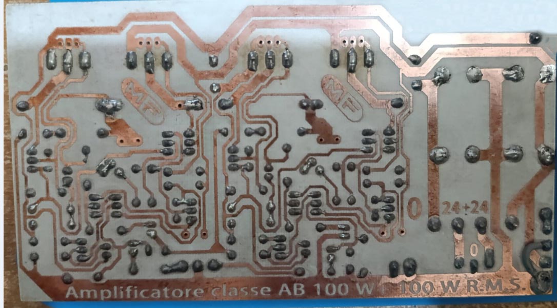 ho realizzato un PCB di un amplificatore AB stereo da 100-100 wrms ( così dicono )...
