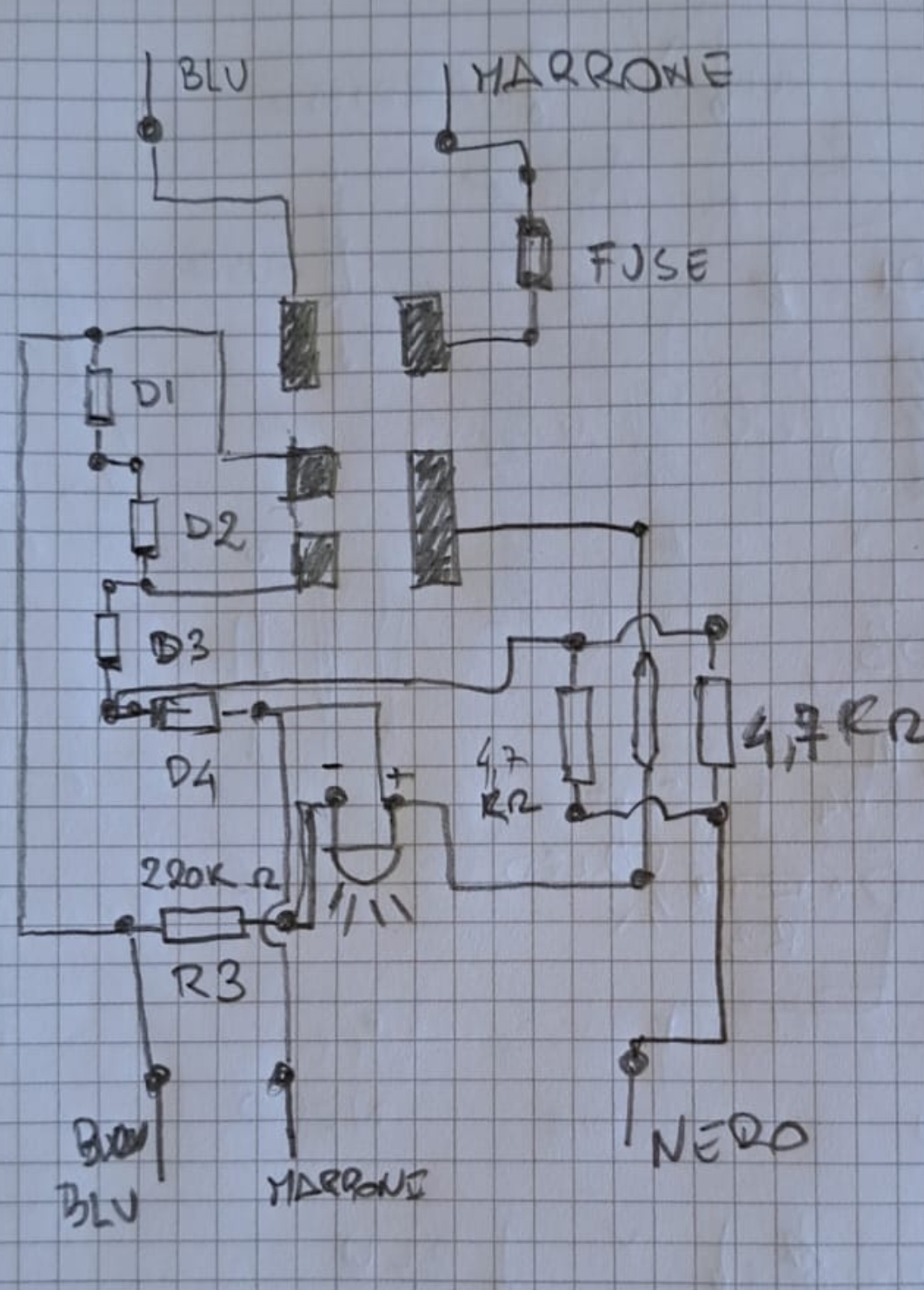 Intanto ho fatto il broglio.. poi cerco di capire per ora non capisco cone fa a funzionare il led e perché tutti quei diodi