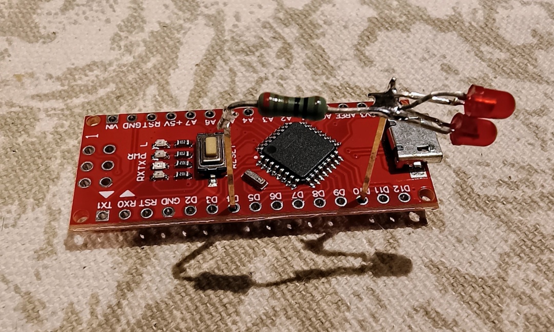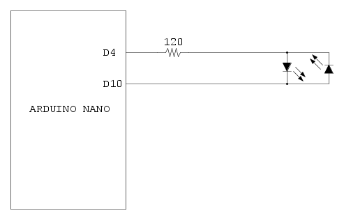 Arduino Nano alimentazione USB 5V con resistenza 120ohm.