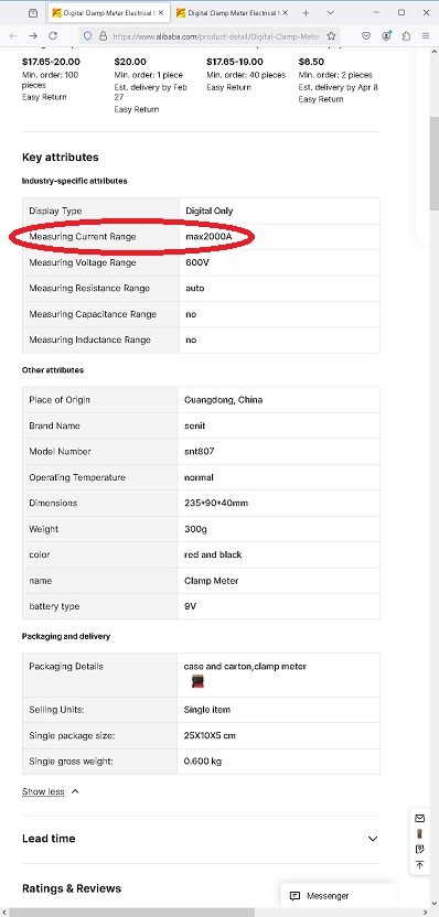 elfo, io nella descrizione dello strumento di Alibaba leggo che per la misura di corrente in AC non c'è autorannge ma diverse portate da 2 A a 1000 A...