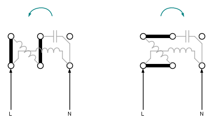 Nel caso di motore monofase i collegamenti degli avvolgimenti alla morsettiera potrebbero essere: