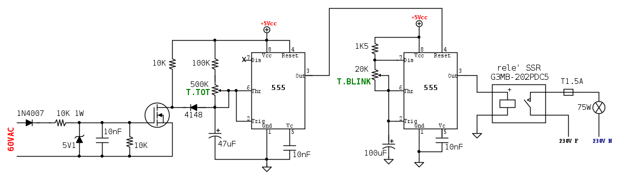 Verifica però se il potenziometro va collegato davvero così, mi sembra strano.E l'1N4148 rischia di apprezzare poco le botte di corrente che si prende scaricando 47 uF.