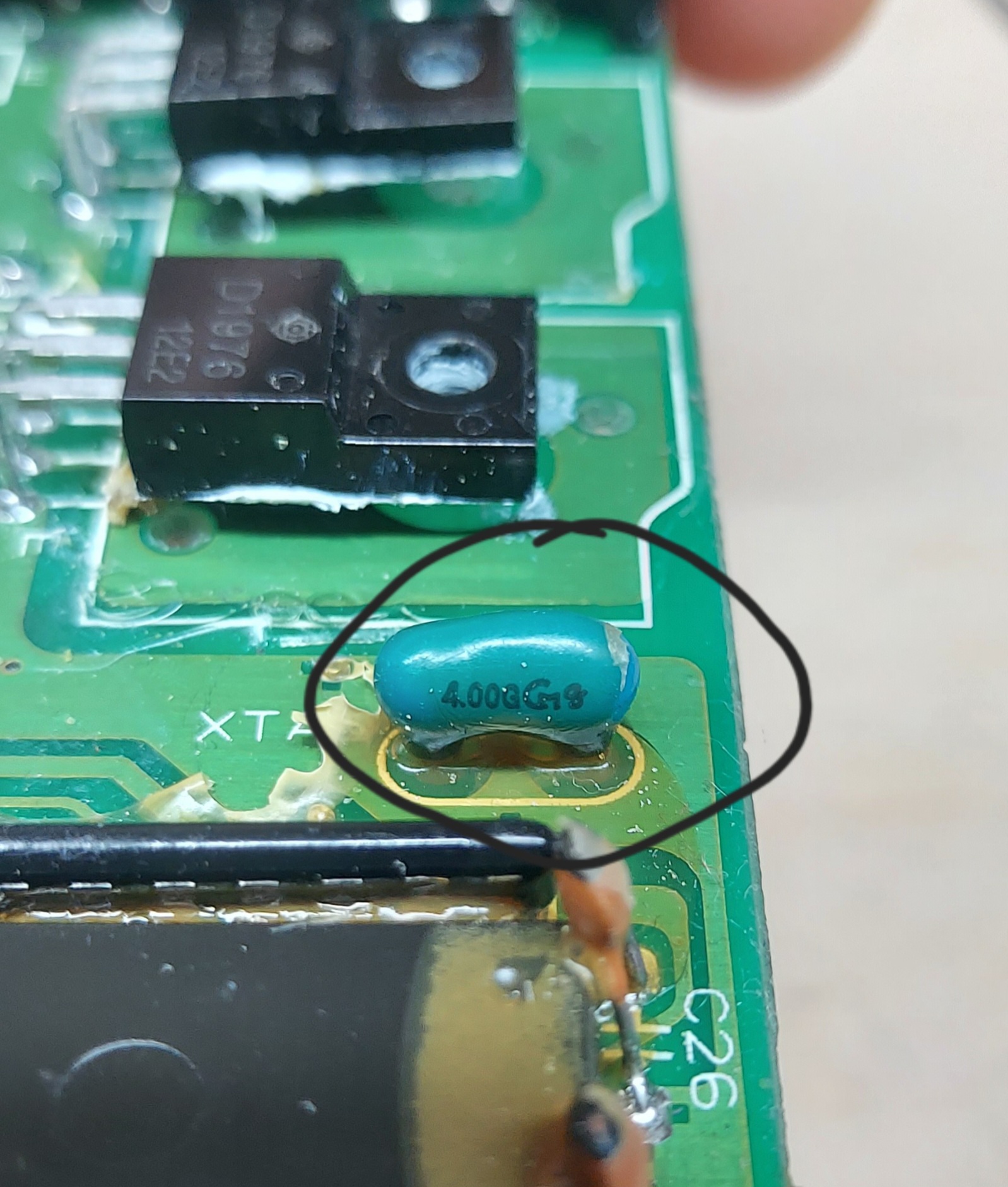 Le serigrafie sullo stampato che dicono? Nella seconda foto leggo Xtal quindi è un elemento risonante, potrebbe essere un quarzo o forse un risuonatore ceramico.