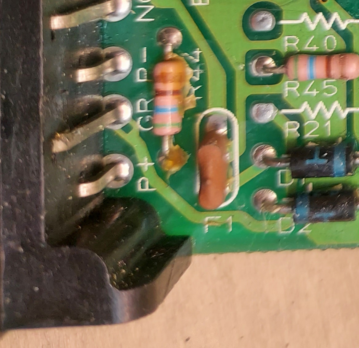 Quello della prima foto ha tre piedini, ed è siglato sulla scheda con Fi, è un componente che non ho mai visto.