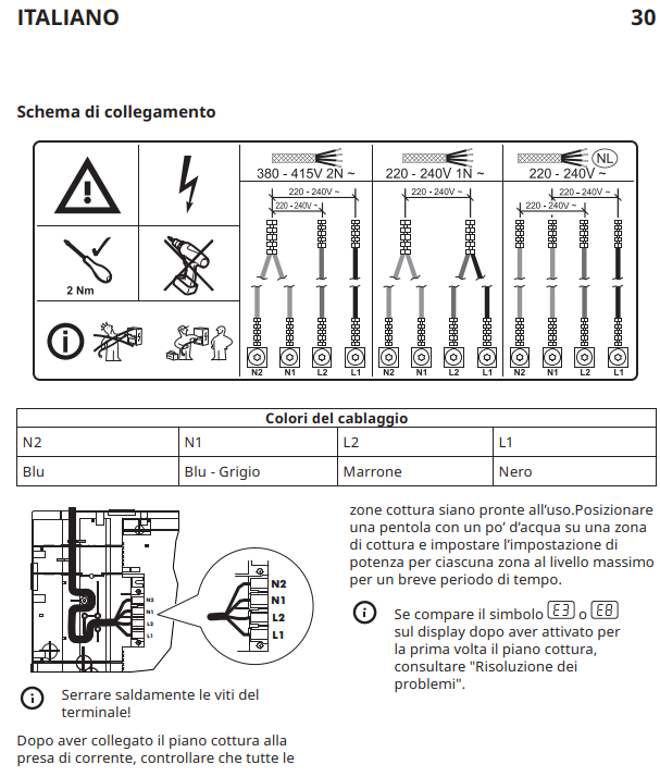 Il vantaggio del collegamento su due fasi è una caduta di tensione molto minore quando il piano funziona a piena potenza