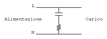 Ho montato tutto dentro la spina. Condensatore ai poli e resistore da 100 ohm in serie. Se alimento la ciabatta senza nulla collegato, funziona perfettamente